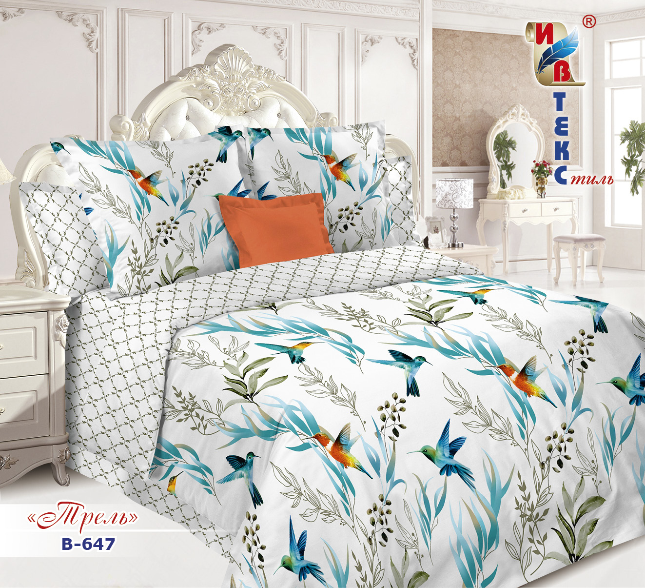 Постельное белье поплин "ИВТЕКС" (размер: 1,5 сп., дизайн: В-647 Трель)