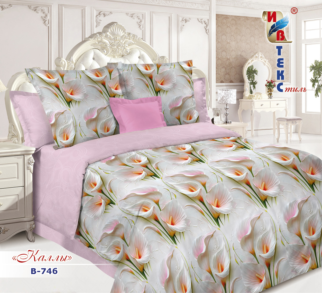 Постельное белье поплин "ИВТЕКС" (размер: 2,0 сп., дизайн: B-746 Каллы)