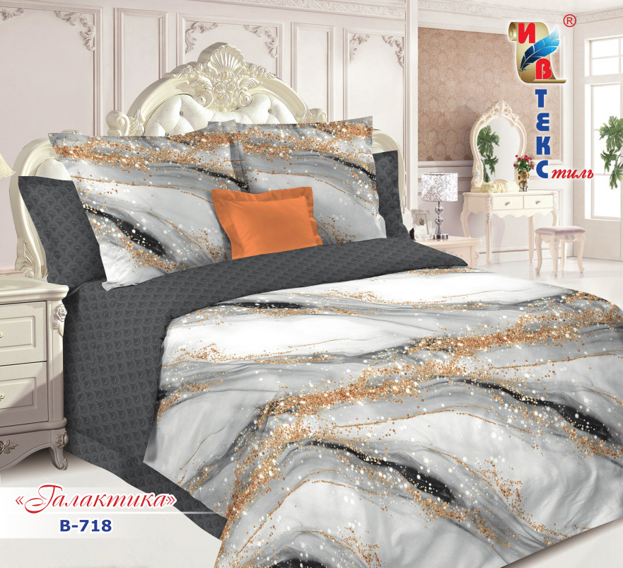 Постельное белье поплин "ИВТЕКС" (размер: 2,0 сп., дизайн: В-718 Галактика)